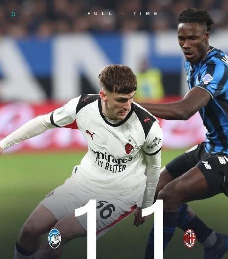 2025年10月29日 两连平!米兰1-1亚特兰大距榜首3分 里奇远射破门莱奥半场伤退